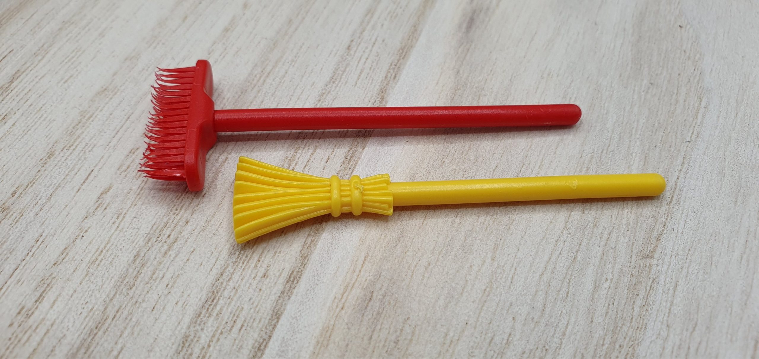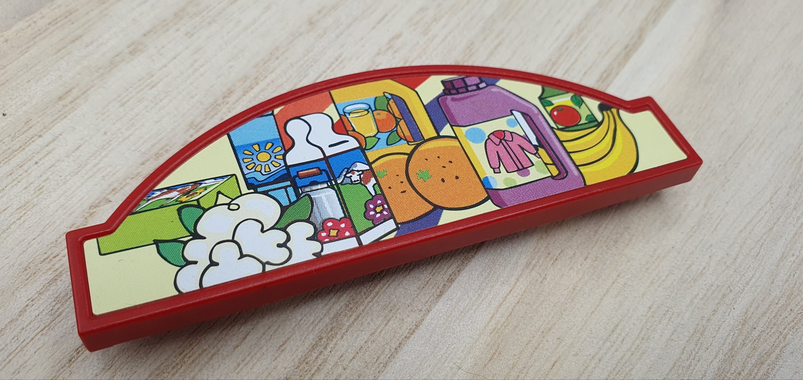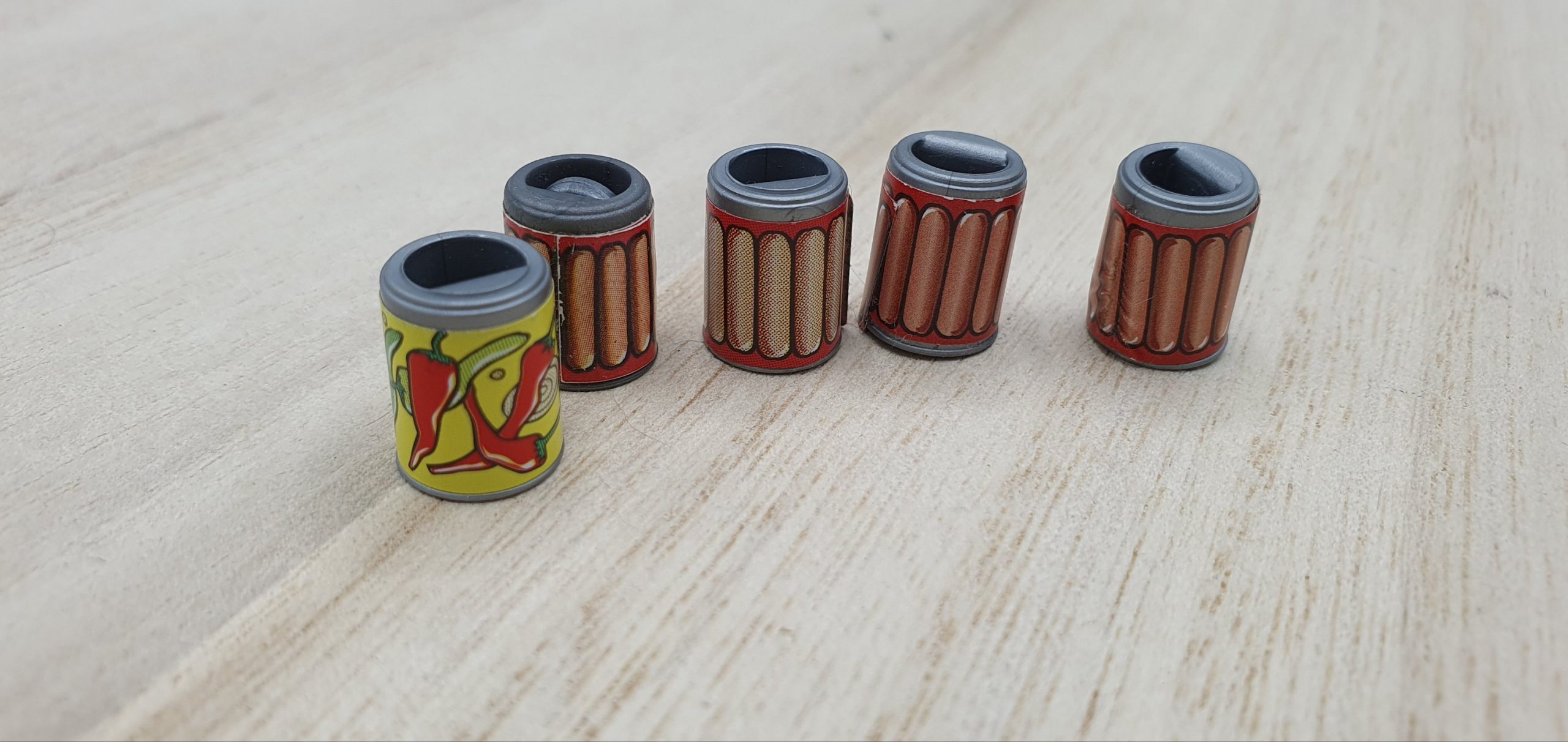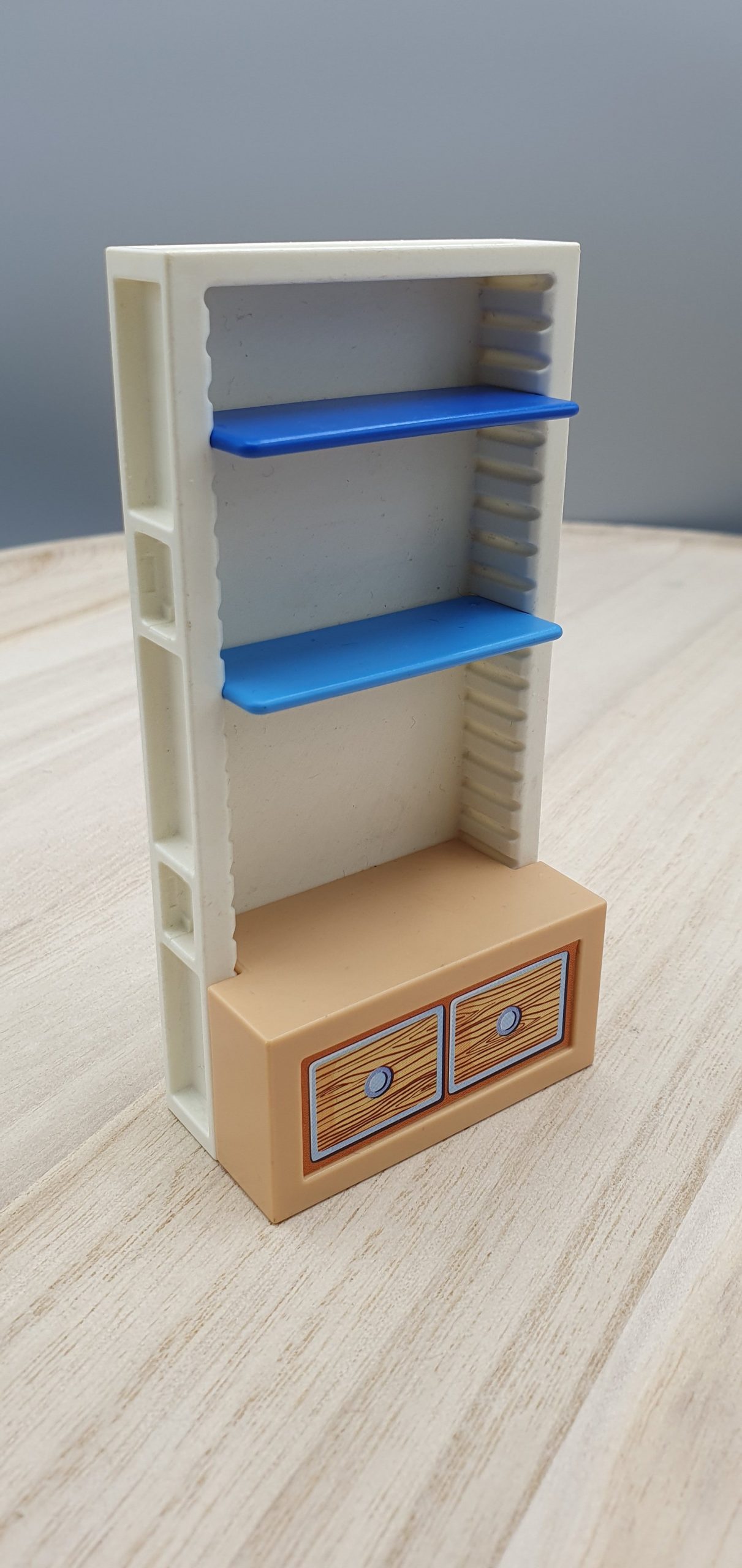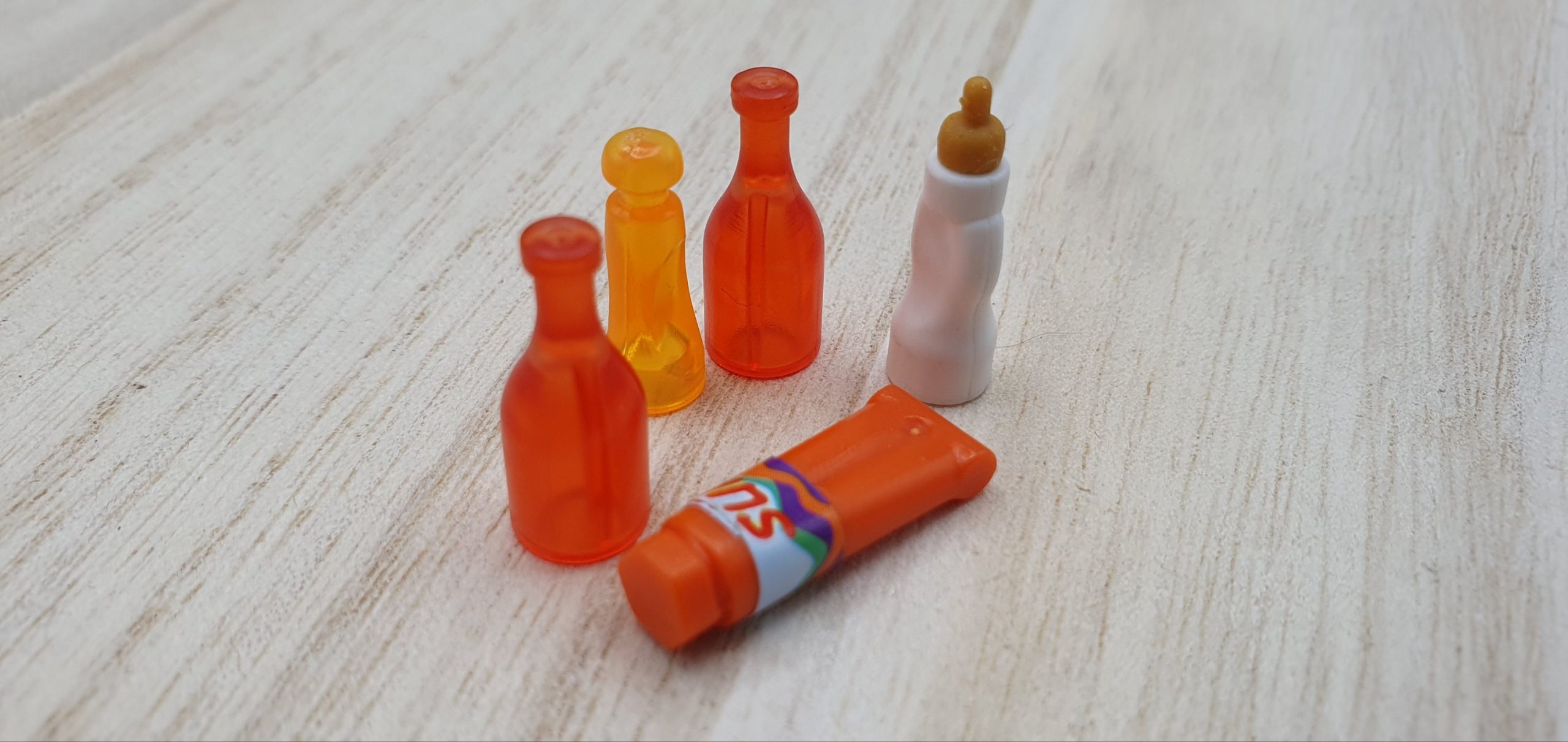 2x Besen, Brötchen, Kasse, Beschreibbares Schild, Dachteil, Ladenschild, Schublade Blau, Schublade Gelb, Zeitung, Schrank mit rosa Einlegeböden, Schrank mit blauen Einlegeböden, Schurmständer, Kehricht, 2x Gebäck, Flaschen und Tuben divers, 4x Tetrapack, 2x Gläser groß, 2x Mehl, 4x Gläser klein, 5x Dose, 4x Kanister, Sprühflasche